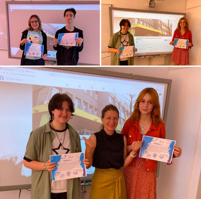 Toma Denice - cls. a XI-a B, Premiul I, Secțiunea - Story;Militaru Teodor-Victor, cls a X-a A, Premiul III, Sectiunea - Story;Moise Rebeca - cls a XI-a B, Premiul III, Sectiunea - Poem;Mavrisi Anca și Moise Rebeca - cls. a XI-a B, Premiul I, Sectiunea - Song (Lyrics + Song).